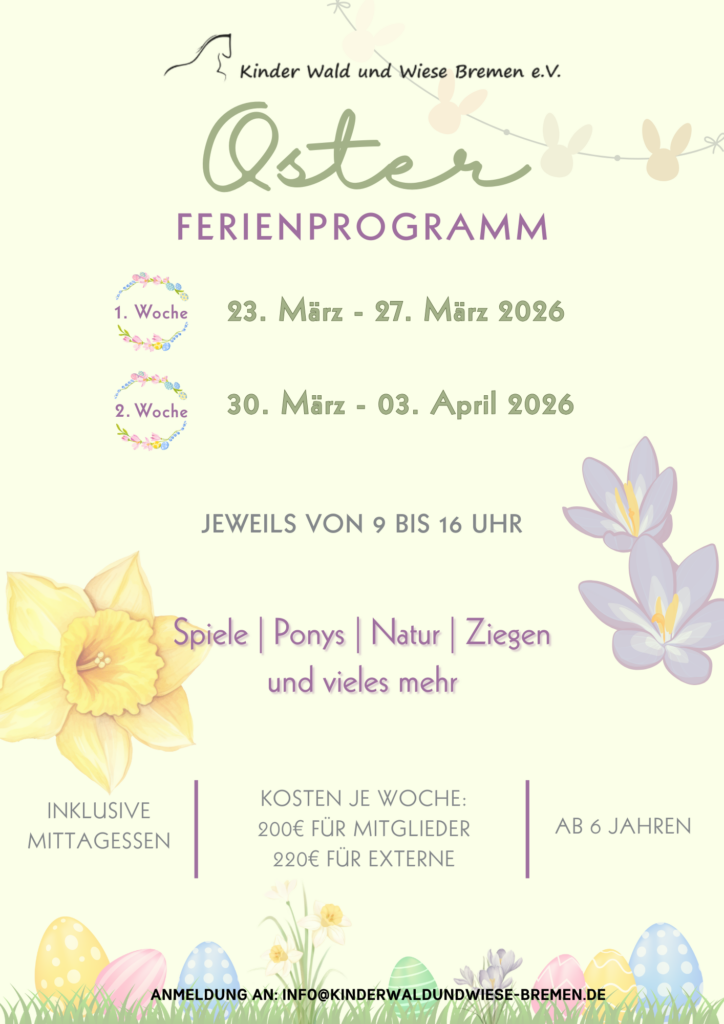 Die Anmeldung für das jeweilige Ferienprogramm erfolgt per Mail an: info@kinderwaldundwiese-bremen.de