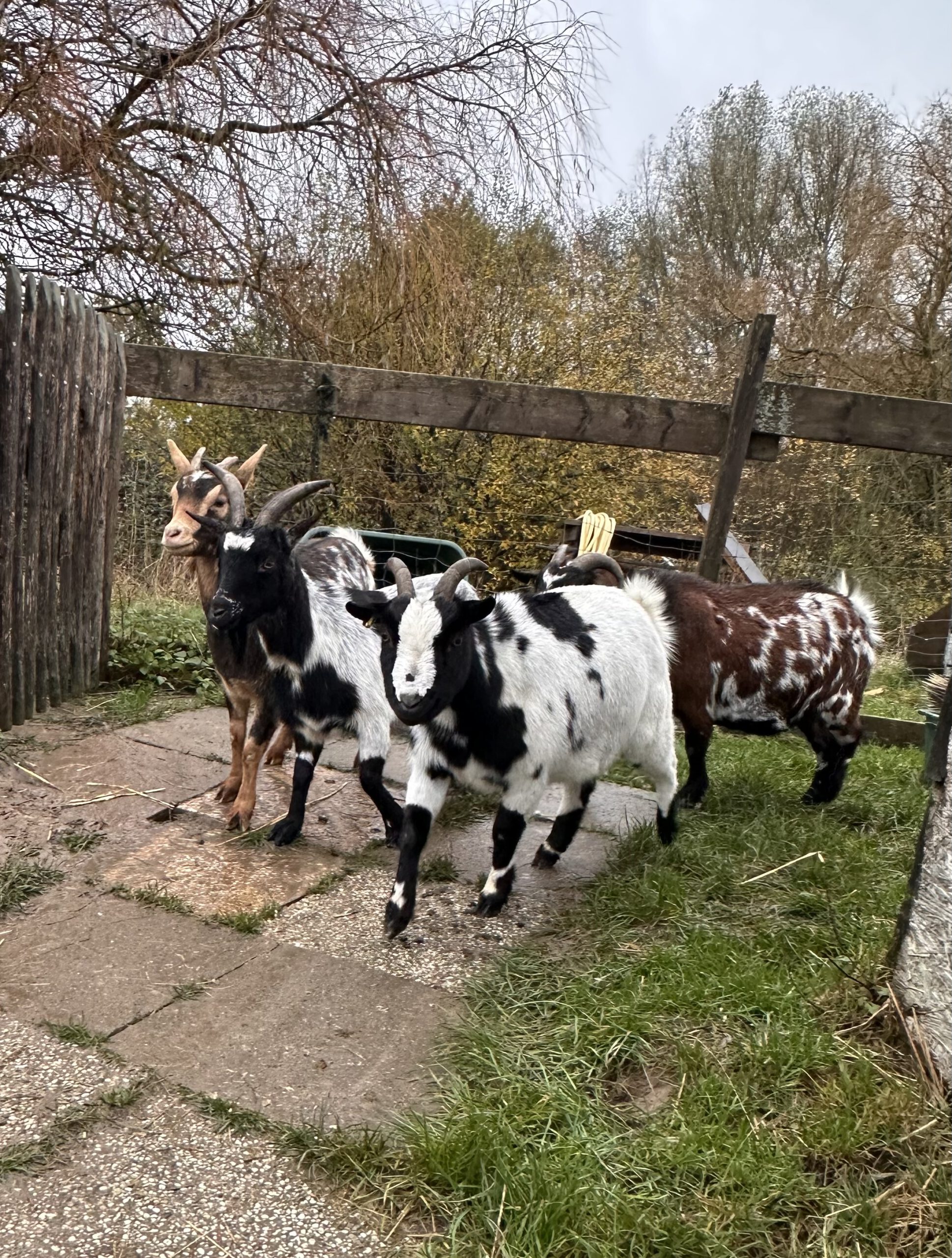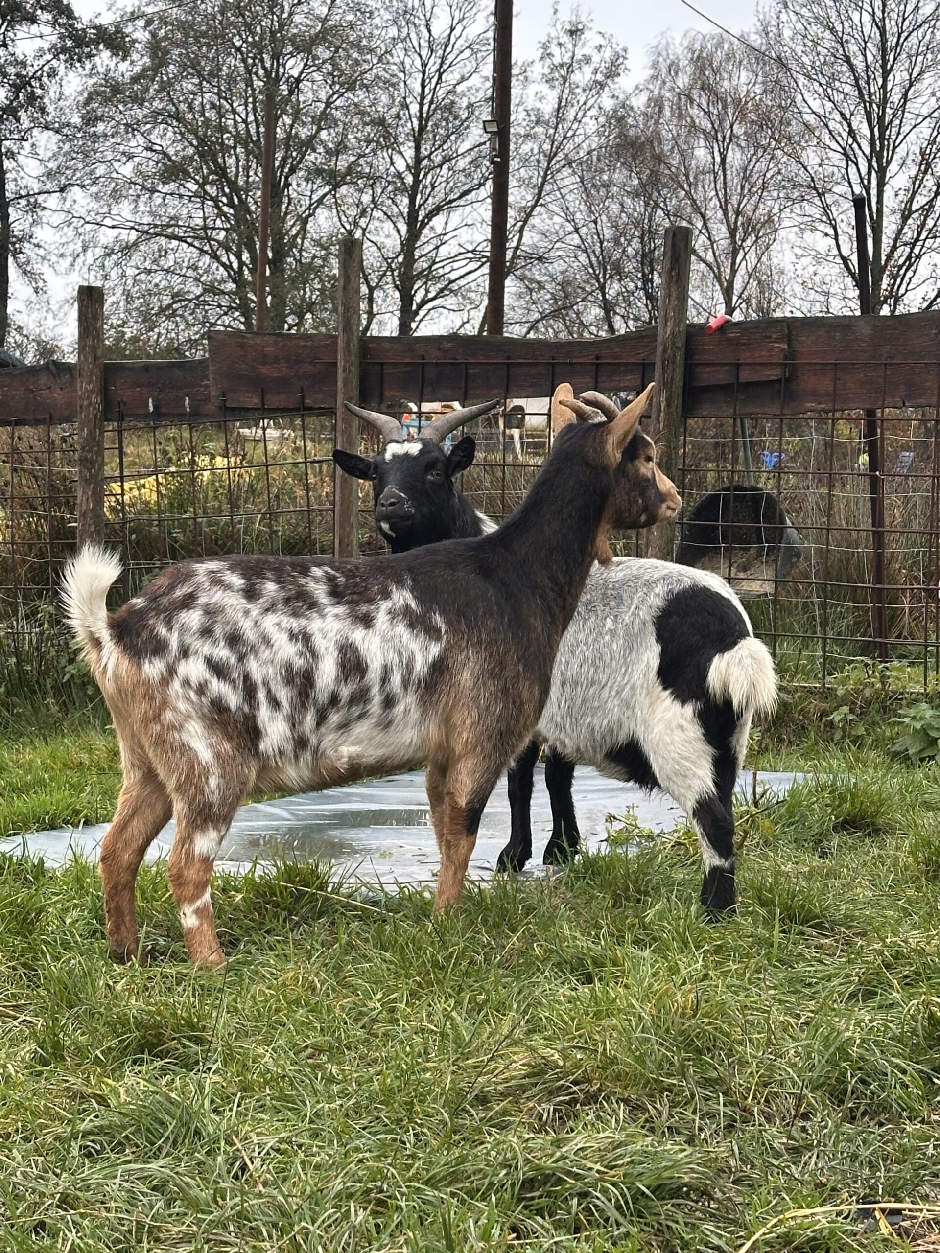 Strolchi und Herkules, die beiden männlichen Zwergziegen, sind besonders zutraulich. Sie kommen neugierig an den Zaun, freuen sich über Gesellschaft und genießen jede Form von Aufmerksamkeit. Oft sind sie die Ersten, die Besucherinnen und Besucher begrüßen und sich über Streicheleinheiten oder Beschäftigungsmöglichkeiten freuen.